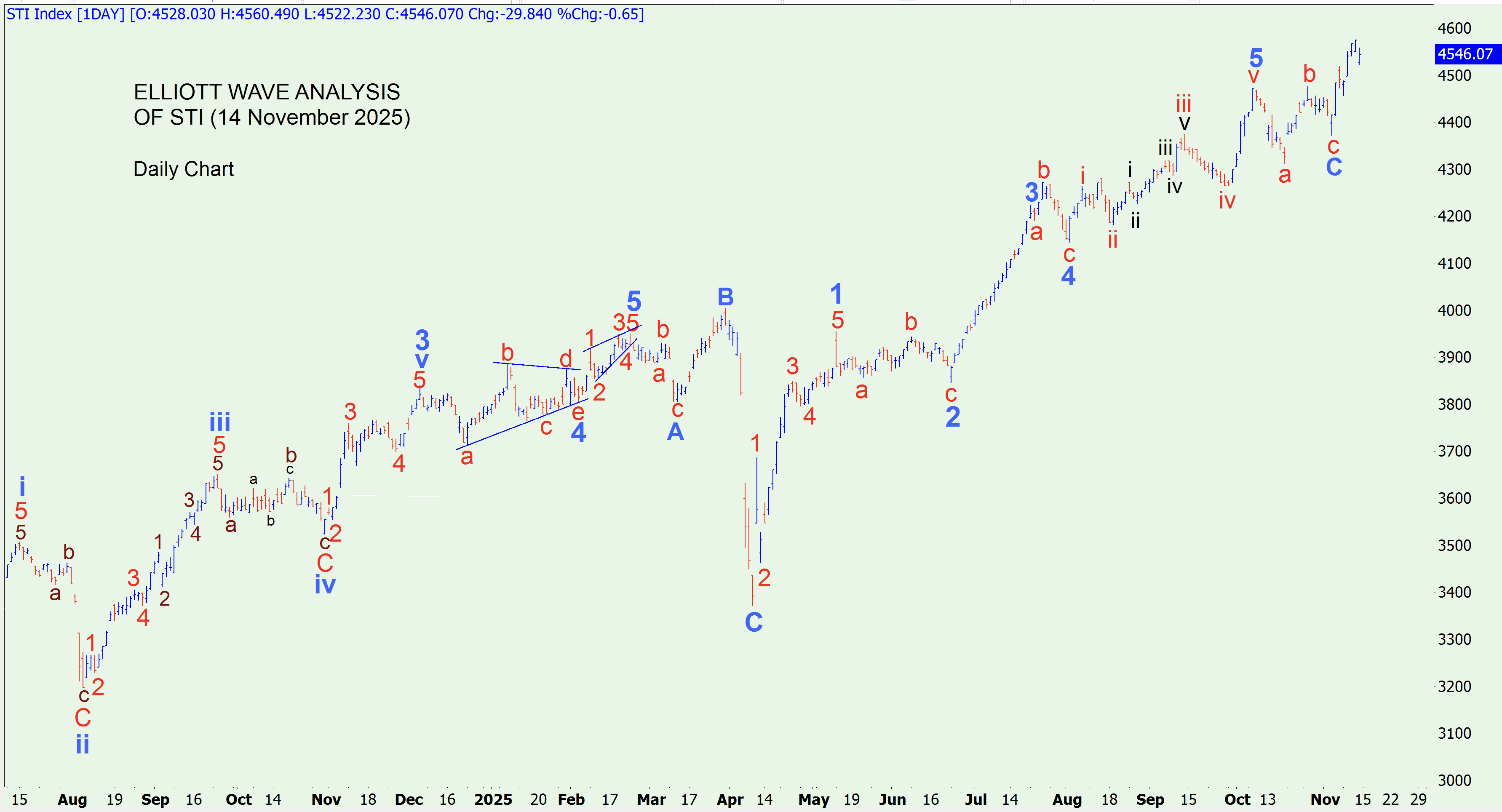 Uncertainty The STI made more all-time highs the last few days, but lost momentum today. The wave structure has become uncertain and it remains to be seen which way the STI will go next week. We just have to wait and see. Previous Archive Next